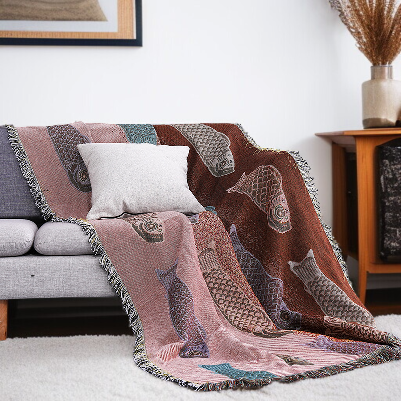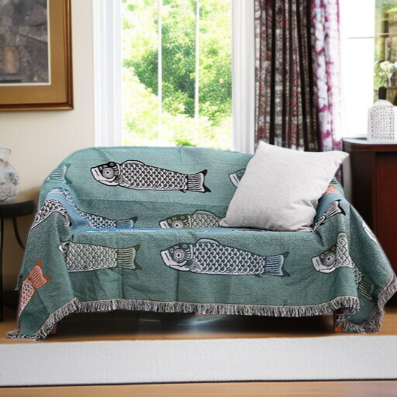 防塵フルカバーソファータオル 鯉装飾カーペット・テーブルクロス ソファブランケット 鯉柄テーブルクロス